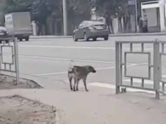 交通量の多い道路を 渡ろうとするワンコ。 大丈夫かな? すると……