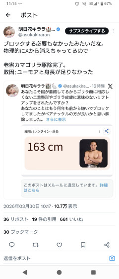 1:それでも動く名無し:2026/03/30(月) 11:16:35.55 ID:a4HRAIk80 3:それでも動く名無し:2026/03/30(月) 11:17:46.46 ID:MrgUdVaJ0 めっちゃキレてるやん 4:それでも動く名無し:2026/03/30(月) 11:18:16.57 ID:uwuDlTM40 整形ロボと馬鹿にされたんか? 5:それでも動く名無し:2026/03/30(月) 11:18:35.28 ID:yyzzeU1j0 効いてる効いてる…