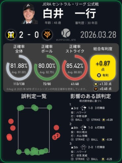 1: 名無しさん 2026/03/30(月) 18:24:42.58 ID:z5ZbR8w10 これ地味に凄いのが縦方向では全てストライクをボールにした誤審という扱いで 横方向は全てボールをストライクにした誤審という扱いってところだと思うんだよね。 つまり枠が全く可変してないってことだし。…