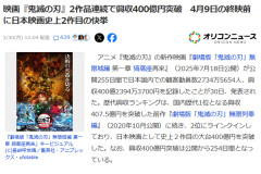 1: 2026/03/30(月) 16:04:27.48 ID:3OU0AKBW0 映画『鬼滅の刃』2作品連続で興収400億円突破 4月9日の終映前に日本映画史上2作目の快挙…