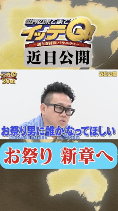 1: 以下、名無しで筋肉速報がお送りします 2026/03/29(日) 21:24:25.88 ID:qU8fGd7r9 3/29(日) 20:22 日本テレビ系謎解き冒険バラエティー『世界の果てまでイッテQ!』(毎週日曜 後7:58)の公式Xが更新され、“二代目お祭り男”の正体が明らかになった。 公式Xは「お祭り男 新章へ」とつづり、動画を投稿。宮川大輔が「二代目やないですけど、お祭り男に誰かなってほしい。祭り魂を受け継いでくれるのは、アイツしかいないと思う」と語り、「アイツとは!」というナレーションで手越が紹介された。 視聴者からは「やばいーー!!嬉しいー!!」「たまんないです」「これからのイッテQも期待」「正式にレギュラー復帰して欲しい」「テイッ」といった声が寄せられている。 世界の果てまでイッテQ! 10周年記念 DVD BOX-BLUE内村光良/他アニプレックス2017-02-26世界の果てまでイッテQ! 10周年記念 DVD BOX-RED内村光良/他アニプレックス2017-02-26…