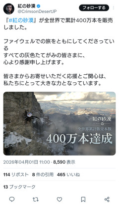 紅の砂漠、400万本突破!