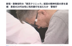 1: ななしさん@発達中 2026/04/01(水) 15:24:27.46 ID:UOsY2iPh9 【東京】新宿歌舞伎町の「東京クリニック」経営の精神科医の男を逮捕 「まだ診察が残っている」と患者の20代女性に性的暴行を加えたか※TBSテレビ 2026年4月1日(水) 11:31 東京の新宿歌舞伎町でクリニックを営む精神科医の男が、患者の女性に対して性的暴行を加えたとして、警視庁に逮捕されました。 不同意性交の疑いで逮捕されたのは、新宿区歌舞伎町にある「東京クリニック」の院長で精神科医の伊沢純容疑者(55)で、去年8月、クリニックの中で患者の20代の女性に対し、性的暴行を加えた疑いがもたれています。 警視庁によりますと、女性はインターネットで伊沢容疑者のクリニックを見つけて電話で予約、その際、伊沢容疑者は無料で診断する旨の話をしたということです。 そして、伊沢容疑者は診察後に女性と共に薬局に行き、薬を受け取った後に「まだ診察が残っている」などとして再びクリニックに戻り、鍵をかけて犯行に及んでいたということです。 取り調べに対し、伊沢容疑者は黙秘しています。 続きは↓…