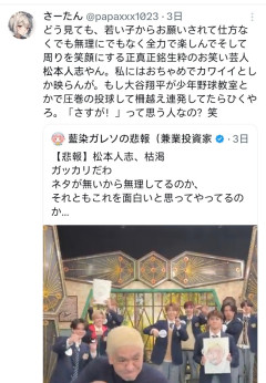 ダウンタウン松本ファン「ダンスしてる松本人志は野球教室で手加減する大谷翔平みたいなもん」