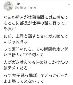 【画像】Z世代さん、上司にガムを噛んでる事を注意されてブチ切れwww