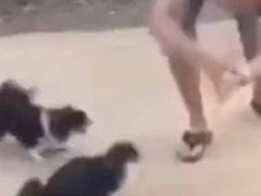 おじさんの周りに数匹の犬がいた。なんだこれ? → 犬たち、こんな技を見せるんです…