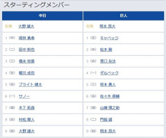 転載元: 452: どうですか解説の名無しさん 2026/04/02(木) 17:14:08.27 ID:gG7ZqIhx0 1 (中) 岡林 勇希 1 (左) キャベッジ 2 (二) 田中 幹也 2 (中) 松本 剛 3 (三) 福永 裕基 3 (遊) 泉口 友汰 4 (左) 細川 成也 4 (一) ダルベック 5 (右) ブライト 健太 5 (三) 坂本 勇人 6 (一) サノー 6 (右) 佐々木 俊輔 7 (捕) 木下 拓哉 7 (捕) 山瀬 慎之助 8 (遊) 村松 開人 8 (二) 門脇 誠 9 (投) 大野 雄大 9 (投) 則本 昂大 458: どうですか解説の名無しさん 2026/04/02(木) 17:16:41.42 ID:V/xMhXPT0 >>452 おおー山瀬来たよw 則本とのセットだわ…
