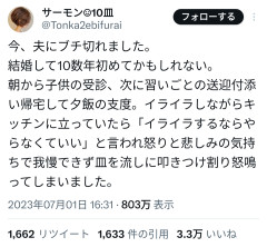 【ギャオン嫁】家事するなって言ったら皿を叩きつける?家庭生活の不毛さがこれwwww