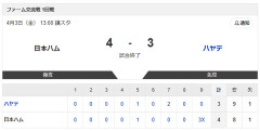【試合結果】日本ハム2軍vsハヤテ4 -3|ファーム交流戦1回戦|個人成績|4/3
