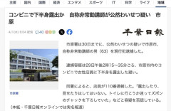 1 : 市原署は30日までに、公然わいせつの疑いで市原市、自称非常勤講師の男(63)を現行犯逮捕した。 逮捕容疑は29日午後2時15~35分ごろ、市原市内のコンビニで女性店員に下半身を露出した疑い。 同署によると、店員が110番通報した。「露出したり、見せたりはしてはいない。トイレに行こうか迷ってズボンのチャックを下ろしていた」などと容疑を否認している。(本紙・千葉日報オンラインでは実名報道)…