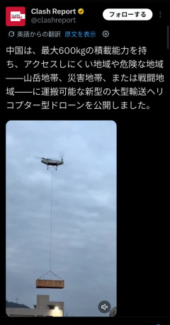 【朗報】中国、600kgの荷物を運べるドローンの開発に成功
