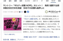 【サントリー】ギルティ炭酸飲料NOPE、発売1週間で2000万本出荷