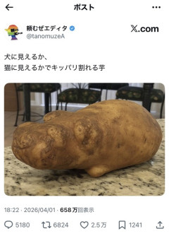 【画像】犬に見えるか猫に見えるかキッパリ割れる「芋」がこちらwwww