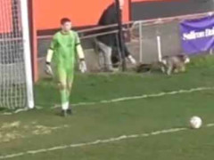 キーパーがゴールキックをしようとしていた。ねぇねぇ何してんの? → ほっこりハプニングです…