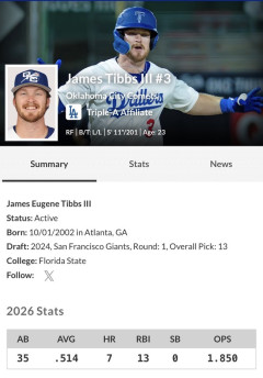 【悲報】ドジャースマイナーの若手外野手、打率5割 7本塁打 OPS1.800超えもメジャーに上がれない