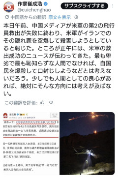 1:2026/04/05(日) 20:32:40.87 ID:MDUvQK5x0今天上午,有中国媒体竟称,美军搜救第二名飞行员无果,欲空袭其在伊朗可能的藏身之处将其炸死。结果中午就传来美军营救成功的消息。只有最卑鄙最无耻的人,才会想到把自己人炸死以灭口,但凡有一丝一毫做人的良心,都绝不会往那方面想。 pic.twitter.com/GM7IeGs3Tv— 作家崔成浩 (@cuichenghao) April 5, 2026転載元スレッド:…