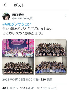 【速報】AKB48田口愛佳さん、Xを更新!!