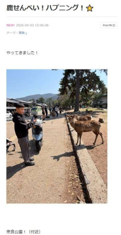 1. 匿名@ガールズちゃんねる さらに「で!誠希千(息子)が!!!顔面鹿に蹴られました!鼻から目の下 山なり足形」と顔に赤い跡が付いた長男の顔を投稿した。 続けての投稿で「ひとしきり鹿さんたちと、戯れさせてもらってから いざ!東大寺へ」と東大寺での家族ショットを披露し「(鹿の絵文字)キック 顔の傷も軽傷でよかったです」と安堵(あんど)する様子を見せた。 2026/04/05(日) 13:02:51…