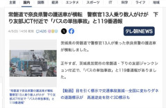 1 : 横転した警察車両は奈良県警の護送車でした。 5日正午すぎ、常磐自動車道下りの友部ジャンクション付近で、「バスの単独事故」と119番通報がありました。 警察や消防によりますと、警察車両が走行中に何らかの原因で横転したということです。 横転した警察車両は奈良県警の護送車で、全員で16人の警察官が乗っていましたが、そのうち数人が擦り傷などのけがをしました。全文はソースで…