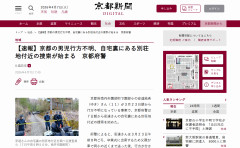 1: 名無し 2026/04/07(火) 08:38:12.45 ID:p8Lq9WvR0 京都府南丹市園部町で園部小の安達結(ゆ)希(き)さん(11)が3月23日朝から行方不明になっている事案で 京都府警は7日朝から安達さんの自宅裏にある別荘地付近の捜索を始めた 府警によると 安達さんは3月23日午前8時ごろ 卒業式に出席するため 父親が車で同小の近くまで送った後 行方が分からなくなっている 29日午前には 親族が安達さんの通学用かばんである黄色のランリュックを発見した 京都新聞 ■要約 ・京都府南丹市の女児不明事案で警察が自宅裏の別荘地付近を捜索開始 ・3月23日の卒業式当日の朝に父親が学校近くまで送った後に行方不明 ・3月29日に本人のものとみられる黄色の通学カバンが親族により発見 ・警察は周辺の捜索を強化し安達さんの足取りを慎重に調査中 アメリカ「おい満州からどけ」日本「嫌だ」アメリカ「もう石油やらね」日本「わかった!わかったから!!」 【出た】 立憲民主党、自民提案の予算案あす採決を拒否「集中審議の時間が十分とられていない」 ※4/1 立民「首相が出席する集中審議開催が採決の前... 【大悲報】 日本、あと2か月で地獄に突入……