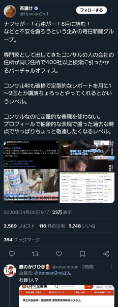 1 名前:名無しさん@涙目です。[] 投稿日:2026/04/06(月) 13:10:46.28 ID:/I4itzxU0 「直ちに需給問題生じず」 木原官房長官、ナフサ巡る一部報道否定 誤情報に注意呼びかけ 木原稔官房長官は6日の記者会見で、中東情勢悪化で供給不足が懸念されるプラスチックの原料ナフサを巡り、「日本は6月に供給を確保できなくなるという情報があるが誤ったものだ。現時点では直ちに需給上の問題は生じていない」と述べた。一部の報道番組が6月にはナフサを確保できなくなると指摘していた。 木原氏はナフサの国内需要に対して「少なくとも4カ月分を確保している」と説明。中東以外からの輸入倍増などで「半年以上に伸ばすことが可能だ」とも語った。その上で「政府や関係団体の公式見解を確認し、誤った情報を拡散しないようお願いする」と呼びかけた。 4 名前:名無しさん@涙目です。[sage] 投稿日:2026/04/06(月) 13:12:48.41 ID:kL046ULP0 デマを流してパニックを起こそうとしてる 31 名前:名無しさん@涙目です。[] 投稿日:2026/04/06(月) 13:24:14.54 ID:ZR7b7wyp0 またオールドメディアが石油ショックの時みたいに不安を煽ってんのか 最近でも米騒動で不安を煽ったばっかりなのに懲りないな 59 名前:名無しさん@涙目です。[] 投稿日:2026/04/06(月) 13:41:56.87 ID:KdaBtszJ0 デマ流してるのマスゴミじゃん 国が出てくるレベルのデマって相当だぞ 9 名前:名無しさん@涙目です。[] 投稿日:2026/04/06(月) 13:14:30.22 ID:yZBuD8K00 TBS の報道特集がデマを公共電波を使ってひろめたとはっきり言うべき 18 名前:名無しさん@涙目です。[] 投稿日:2026/04/06(月) 13:17:56.20 ID:CxZAQEdY0 「直ちに」って事は来月からはキツいって事だろ コイツらの言葉は信用出来ないわ 58 名前:名無しさん@涙目です。[sage] 投稿日:2026/04/06(月) 13:41:18.45 ID:wrJWlEOa0 >>18 大本営発表を鵜呑みにはせんが TBS報道特集と比べるとね… 11 名前:名無しさん@涙目です。[] 投稿日:2026/04/06(月) 13:15:52.32 ID:O9ozjdjR0 なら何で日本の化学メーカーが軒並みエチレンの製造をラインを止めてまで減産してるんだろうな 125 名前:名無しさん@涙目です。[] 投稿日:2026/04/06(月) 14:19:00.57 ID:Ino1AHLs0 >>11 最初から言われているだろ 現時点で足りないわけではないがもし将来的に不足する事があって製造を止めてしまうと再開するのに膨大なコストと時間がかかる だから安全策として使用量を減らしている 173 名前:名無しさん@涙目です。[] 投稿日:2026/04/06(月) 14:55:08.95 ID:N/tNBxlb0 >>11 国内石化はエチレン減産だけで停止はしてないがw 止まっちゃったのは東南アジア勢で、三月入ってすぐにギブギブ!!だぜ 知らんのなら無理しないでな 52 名前:名無しさん@涙目です。[] 投稿日:2026/04/06(月) 13:37:24.78 ID:QjOvVSlD0 首相が4ヶ月分は確保してると断言してるんだから、そこまではあるんだろ。その先は知らんけど。極左のプロパガンダ番組御用達の「専門家」よりは信用するよ。 246 名前:名無しさん@涙目です。[] 投稿日:2026/04/06(月) 17:07:27.16 ID:hA1IKVcC0 高市も木原も無責任だから逼迫が現実になってから呼びかけ時期をいつにするか考えりゃいいとか思ってんだろ 現実にならなきゃウソになるかもって今気にすることさえない自己保身だけしか考えてない 自己保身の代わりにこの国や国民がどうなろうと知ったこっちゃないんだろ 最悪の事態になっても「どーもごめん」で済むと思ってんだよこのクソゴミ内閣は 248 名前:名無しさん@涙目です。[sage] 投稿日:2026/04/06(月) 17:10:42.25 ID:zjvfaZkj0 >>246 興奮し過ぎで支離滅裂過ぎる 言いたい事位纏めろよ 252 名前:名無しさん@涙目です。[] 投稿日:2026/04/06(月) 17:27:45.69 ID:NQv9Jh9U0 >>246 妄想で非難してる こうに決まってるお前が悪い やっぱりこの人達おかしいわ 175 名前:名無しさん@涙目です。[] 投稿日:2026/04/06(月) 14:59:32.64 ID:ctB6YO1N0 高市政権発狂www 183 名前:名無しさん@涙目です。[] 投稿日:2026/04/06(月) 15:09:16.84 ID:+CeSTjRN0 >>175 やっぱ首相の発信力って大事だわ 君たちの悪巧みが晒され一瞬で拡散されて検証されるんだからな 189 名前:名無しさん@涙目です。[] 投稿日:2026/04/06(月) 15:14:38.58 ID:dwtOUzLg0 >>183 黙ってると嘘やデマカセが既知の事実として出回るからな 市場にも影響するし早めに釘指すのは大事 55 名前:名無しさん@涙目です。[] 投稿日:2026/04/06(月) 13:38:10.85 ID:myGIvMIL0 一部というか大手マスゴミほぼアタリだよね 意図的に誤った情報を拡散するお仕事でしたっけ 48 名前:名無しさん@涙目です。[] 投稿日:2026/04/06(月) 13:36:23.39 ID:SPiRSOYe0 オールドメディアがもう必死だよな 57 名前:名無しさん@涙目です。[] 投稿日:2026/04/06(月) 13:40:50.23 ID:5dYd8n+50 TBSはオウム真理教を支持したテロ支援TV局だし 67 名前:名無しさん@涙目です。[] 投稿日:2026/04/06(月) 13:47:24.07 ID:4VfYWo+10 オウムTBSがまーた捏造したんか? 何度目だ? ホントこの腐れテレビ局は偏向煽動による分断と混乱、犬笛による暴力殺人、カルトテロ組織に情報提供、冤罪ふっかけてリンチ by 杉尾番組とイカれたことしかせんな 16 名前:名無しさん@涙目です。[] 投稿日:2026/04/06(月) 13:17:26.92 ID:02TBk7wh0 報道