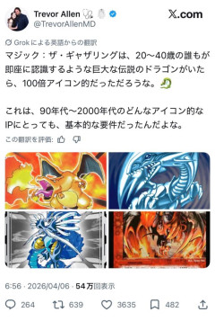 【画像】海外X民「マジックザギャザリングには、遊戯王のブルーアイズやデュエマのボルシャックのようなドラゴンの象徴が居ない!!!」