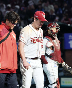 【楽天】前田健太が緊急降板 4回の投球後に右足を気にするそぶりを見せる