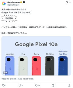 1: 2026/04/07(火) 09:06:26.54 ID:+D2zPFwK0 imgur.com/dQMJeya 2: 2026/04/07(火) 09:13:02.60 ID:+D2zPFwK0 日本限定の特別モデル「Isai Blue」 Google Pixelの誕生10周年を記念し、ヘラルボニーと共創した日本限定モデル「Isai Blue(異彩ブルー)」が展開される。自閉症啓発デーのテーマカラーであり、ヘラルボニーのブランドカラーでもあるブルーを本体色に採用した。 「Google Pixel 10a」発表、約8万円~ 日本限定モ…グーグルは、新型Androidスマートフォン「Google Pixel 10a」を発表した。発売日は4月14日で、予約受付がすでに始まっている。… - k-tai.watch.impress.co.jp imgur.com/hUx91i7 3: 2026/04/07(火) 09:10:34.36 ID:i3JYVpK10 ケースつけるのにデザインとはw ★よく読まれている記事 【画像】桜井日奈子さんの身体、仕上がる 【悲報】JC、子供を家の庭に埋めて隠して逮捕 【動画】白人女性、タイでお姉さんに喧嘩を売るも返り討ちにされる 【悲報】学歴詐称の女市長さん、卒業証書を偽造するも本物を見たことがなかった模様 【悲報】女の言う「清潔感」の正体、明らかになる 【画像】内閣府「未婚・少子化の原因は女の高望み。特に30代の女がヤバい」 【画像】イマドキの小学6年生、大人っぽすぎる 【動画】お胸が半分出てるダンサー、出現 【悲報】タバコ300箱を段ボールごと万引きした女さん、取り返そうとした経営者を車で引きずり逃走 【画像】大人気整形インフルエンサー女子、中国に麻薬密輸して逮捕される 【衝撃】女児「ママ…?赤ちゃんできちゃったかも…」→道場で女児8人を襲った塾長に懲役24年 【感動】嬢さん、おばあちゃんに夜のお店で働いてること伝えた結果 【悲報】坂口杏里さん、体重90kg(167cm)になっていた 【画像】勤務中にアダルトサイトを閲覧していた50代公務員、その手口と閲覧時間がガチでヤバい 【動画】理想のBBA先輩…