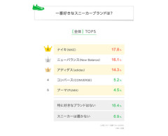 1: 名無しさん@涙目です。(東京都) [ヌコ] 2024/02/24(土) 14:50:46.85 ID:+1zGhA7b0● BE:837857943-PLT(17930) 街歩きやウォーキング、ちょっとしたランニングなど、様々なシーンで私たちの足をオシャレに飾るスニーカー。ニューバランスやアディダス、 コンバースなど様々な商品がある中で、もっとも人気のブランドはいったい何だろうか? スマートフォン専用のリサーチプラットフォーム「LINEリサーチ」はこのほど、全国の10~60代を対象に、一番好きなスニーカーブランドと、 そのブランドを好きな理由について調査を実施し、その結果を発表した。 普段スニーカーを履くかどうか、履く人には代表的なスニーカーブランドの中で、一番好きなブランドを聞いた。 一番好きなスニーカーブランドの全体1位は、「ナイキ(NIKE)」で17.8%となった。2位以降は「ニューバランス(New Balance)」 「アディダス(adidas)」も1割台で続く。また、「スニーカーは履かない」という人の割合は全体で約7%となった。 引用元:…