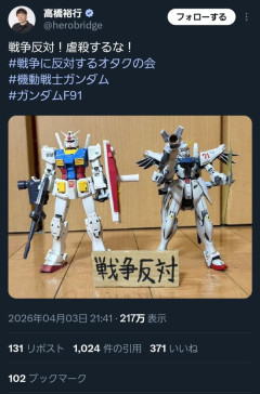 【画像】にわかオタクさん、ガンダムを反戦作品だと勘違いして炎上wwwwwwwww