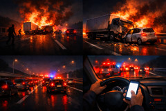 【衝撃】新名神6人死亡事故、トラック運転の女「スマホ見ていた」供述…3台炎上で6人死亡