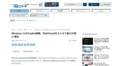 1 : Windows 11のCopilot刷新、WebView2化でメモリ最大10倍に増加 Windows Latestは4月5日(現地時間)、「New Copilot for Windows 11 includes a full Microsoft Edge package, uses more RAM」において、Windows 11のMicrosoft Copilotアプリが刷新されたと伝えた。 従来のWinUIを用いたネイティブバージョンのCopilotアプリは廃止され、新たにWebView2(EdgeベースのUI技術)を用いたバージョンに置き換えられたという。全文はソースで…