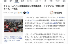 1 : [8日 ロイター] - イランは、イスラエルによるレバノンへの攻撃が続く場合、停戦合意から離脱する考えと、イランのタスニム通信が8日、情報筋の話として報じた。 報道によると、レバノンを含む全戦線での戦闘停止は米国との2週間の停戦合意の一部だったというが、米ニュースサイトのアクシオスは、米ホワイトハウスのレビット報道官の発言として、レバノンは停戦合意に含まれていないと報じた。 全文はソースで…