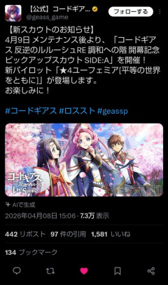 【朗報】コードギアスのソシャゲ、行政特区日本が無事設立しユフィとルルーシュが手を組むIFシナリオが実装決定www