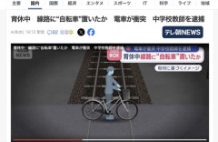 1 : ■育休中 線路に“自転車”置いたか 現場は列車が猛スピードで通過する大阪府堺市の踏切。防犯カメラには8日午前0時すぎ、自転車を押しながら線路内に入る男の姿が…。 すると、自転車を倒して線路上に放置して立ち去ったのです。 そこへやって来た列車が自転車と衝突。30メートル近く自転車を引きずって停車しました。 7日に逮捕されたのは中村太樹容疑者(33)で、中学校の教師です。 なぜ自転車を線路に置いたのか…。 教師 中村容疑者の供述 「自宅までの足代わりに盗んだ。盗んだ物は自宅の近くに置きたくないと思い、軽い気持ちで自転車を線路上に捨てた」 1月から育児休業中だったということです。…