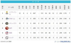 33: 名無しさん 2026/04/09(木) 22:59:16.995 またこの順位ですか 2: 名無しさん 2026/04/09(木) 22:51:27.530 今日Aクラス全勝か… 3: 名無しさん 2026/04/09(木) 22:51:57.191 何も変わらない日常 4: 名無しさん 2026/04/09(木) 22:52:48.669 今んところ去年と何も変わらんな 51: 名無しさん 2026/04/09(木) 23:04:29.706 WAR的には1位2位と4位5位は入れ替わるらしい スポンサーリンク 42: 名無しさん 2026/04/09(木) 23:02:57.990 ソフトバンクとそれなりにやれてホッとしたわ 2勝6敗で福岡乗り込んだ時はどうなるかと思った 44: 名無しさん 2026/04/09(木) 23:03:37.112 >>42 もっとホームランポンポン出るおもてたわ 14: 名無しさん 2026/04/09(木) 20:34:48.860 ビジター勝ち越しならようやっとる 8: 名無しさん 2026/04/09(木) 22:54:51.306 冷温停止の西武打線だけど菅井が無失点だからよしとするか 87: 名無しさん 2026/04/09(木) 23:05:57.835 ようやく西武とハムかと思ったら来週末までないやんけ 18: 名無しさん 2026/04/09(木) 22:55:36.431 宮城大丈夫なんかね オリックスのピッチャー怪我人多くね 131: 名無しさん 2026/04/09(木) 23:18:52.293 宮城はなんやったんや? 132: 名無しさん 2026/04/09(木) 23:20:13.602 >>131 左腕違和感 肘かね 108: 名無しさん 2026/04/09(木) 23:11:25.707 強きを助け弱きを挫くオリックスによってパリーグが分断される 88: 名無しさん 2026/04/09(木) 23:08:19.846 3試合で2回先発が緊急降板してる楽天は呪われてんのか? 91: 名無しさん 2026/04/09(木) 23:11:30.160 >>88 😎「野球にならん」 92: 名無しさん 2026/04/09(木) 23:09:10.049 >>88 球場が最強すぎるだけやからセーフ 149: 名無しさん 2026/04/09(木) 23:22:07.589 最強フェンスって一度でもイーグルスに味方したことあるんか? 150: 名無しさん 2026/04/09(木) 23:28:31.013 >>149 ない マジでない 166: 名無しさん 2026/04/09(木) 23:26:49.793 言うて西武割とチーム状態自体はよくないか? 167: 名無しさん 2026/04/09(木) 23:30:35.503 >>166 あ? チーム得点 ハム 62 SB 54 オリ 47 楽 36 ロ 30 西 28 353: 名無しさん 2026/04/09(木) 23:56:50.406 他も主力抜けてるけど西武は主軸のネビンが抜けてるのが痛い 202: 名無しさん 2026/04/09(木) 23:33:12.499 ワイらの茶野使ってや西武はん イースタンで高打率らしいやん 203: 名無しさん 2026/04/09(木) 23:34:56.553 >>202 岸がこのまま打たなければチャンスはある 204: 名無しさん 2026/04/09(木) 23:36:03.695 >>203 茶野タオル持参して待っとくからな 437: 名無しさん 2026/04/10(金) 00:07:31.502 ハムは開幕からあちち打線やったのに全く冷える様子なくもう2回目の対戦とか怖すぎるわ 439: 名無しさん 2026/04/10(金) 00:09:34.973 >>437 東北の強風と寒さで冷やしておいたぞ 440: 名無しさん 2026/04/10(金) 00:08:46.138 >>437 今めちゃくちゃ冷えてるぞ 楽天3連戦のチーム打率が.130くらいだった 441: 名無しさん 2026/04/10(金) 00:09:27.367 >>440 最強パークが物理的に冷えてるせいだと思うんですけど 234: 名無しさん 2026/04/09(木) 23:39:16.967 結局いつものパリーグに落ち着く 342: 名無しさん 2026/04/09(木) 23:52:39.131 まぁまだまだ分からんと思うぞ というか戦力見渡すとバンクよりハムのが戦力ありそうに見える リリーフもあんま使ってないし 343: 名無しさん 2026/04/09(木) 23:55:08.141 >>342 ほんまやな登板数上位ソフトバンクと楽天ばっかやった 346: 名無しさん 2026/04/09(木) 23:53:16.339 >>342 ホームランやばすぎやろハム 清宮ホームラン王普通にありえそう 443: 名無しさん 2026/04/10(金) 00:07:45.899 今年のソフトバンクのスタメン平均年齢32とかやろ 363: 名無しさん 2026/04/09(木) 23:58:45.330 西武の貧打をソフトバンクに伝染させて冷やしておいたで 364: 名無しさん 2026/04/09(木) 23:59:47.815 >>363 近藤冷えてないやん😡 153: 名無しさん 2026/04/09(木) 20:58:33.148 明日大宮☔だけど試合出来るんか? 154: 名無しさん 2026/04/09(木) 20:59:07.000 >>153 小雨なら普通にやると思う …