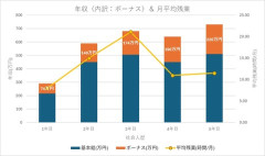 【画像あり】仕事だるいから「年収と残業推移」のグラフ作った!!!