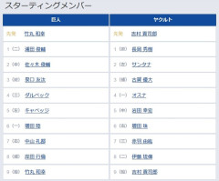 転載元: 218: どうですか解説の名無しさん 2026/04/10(金) 17:15:34.19 ID:/InSoc3xd ヤクルト戦(東京D、18:00) #巨人 4 #浦田俊輔 8 #佐々木俊輔 6 #泉口友汰 5 #ダルベック 7 #キャベッジ 3 #増田陸 9 #中山礼都 2 #岸田行倫 1 #竹丸和幸 2番にジョージ、5番にキャベッジ #ジャイアンツ #giants 220: どうですか解説の名無しさん 2026/04/10(金) 17:16:01.40 ID:/InSoc3xd 1 (二) 浦田 俊輔 1 (遊) 長岡 秀樹 2 (中) 佐々木 俊輔 2 (左) サンタナ 3 (遊) 泉口 友汰 3 (捕) 古賀 優大 4 (三) ダルベック 4 (一) オスナ 5 (左) キャベッジ 5 (中) 岩田 幸宏 6 (一) 増田 陸 6 (右) 増田 珠 7 (右) 中山 礼都 7 (三) 赤羽 由紘 8 (捕) 岸田 行倫 8 (二) 伊藤 琉偉 9 (投) 竹丸 和幸 9 (投) 吉村 貢司郎 221: どうですか解説の名無しさん 2026/04/10(金) 17:16:26.01 ID:/InSoc3xd 4/11(土)の予告先発 (G-S)マタ×山野太一 (DB-C)東克樹×ターノック (D-T)大野雄大×伊原陵人 (E-B)早川隆久×九里亜蓮 (L-M)武内夏暉×田中晴也…