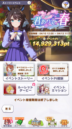 【ウマ娘】TP消費倍増期間が辛過ぎてあんまりイベポ稼げなかった
