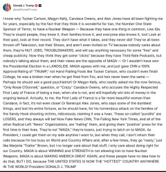 1: それでも動く名無し 2026/04/10(金) 17:41:37.07 ID:ZWwGgDcrr こわい 最近トランプが狂いすぎてるので元の仲間がトランプを批判して敵になる ↓ 狂ったようにそいつらを罵る長文アップ …