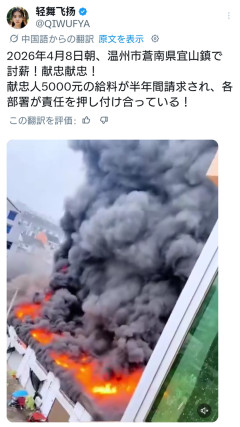1:2026/04/10(金) 19:20:44.95 ID:EAequY2b02026年4月8日早上,温州苍南县宜山镇讨薪献忠!献忠人5000元工资要了半年,各部门踢皮球! pic.twitter.com/VHEi07xiOC— 轻舞飞扬 (@QIWUFYA) April 9, 2026転載元スレッド:…