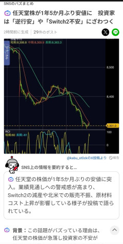 任天堂株が1年5か月ぶり安値、SNSでバズってしまう