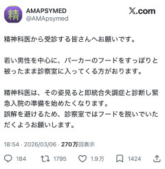 【悲報】フード被りパーカーおじさん、統合失調症だった