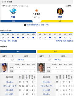 【ドラゴンズ実況】4/11 中日vs阪神(バンテリンD)14:00~先発:大野雄大 【中継:東海TV Jスポ2 DAZN他】