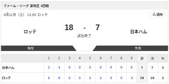 【試合結果】ロッテvs日本ハム2軍 18-7|東地区4回戦|個人成績|4/11