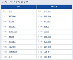 転載元: 712: どうですか解説の名無しさん 2026/04/11(土) 17:16:39.55 ID:MOn0sIiXd (二) 浦田 俊輔 1 (遊) 長岡 秀樹 (中) 松本 剛 2 (左) サンタナ (遊) 泉口 友汰 3 (捕) 鈴木 叶 (左) キャベッジ 4 (一) オスナ (一) 増田 陸 5 (中) 岩田 幸宏 (三) 坂本 勇人 6 (右) 丸山 和郁 (右) 平山 功太 7 (二) 武岡 龍世 (捕) 山瀬 慎之助 8 (投) 山野 太一 (投) マタ 9 (三) 田中 陽翔 716: どうですか解説の名無しさん 2026/04/11(土) 17:17:03.39 ID:J/93CvBD0 スタメンカオスになり始めたのお…
