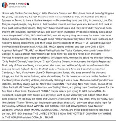 1: 2026/04/11(土) 14:24:13.83 ID:dJ1auzov0 こわい最近トランプが狂いすぎてるので元の仲間がトランプを批判して敵になる↓狂ったようにそいつらを罵る長文を連続アップ imgur.com/u9PE3ab 2: 2026/04/11(土) 14:24:54.10 ID:mk9KehUa0 めっちゃ早口でいってそう 3: 2026/04/11(土) 14:24:34.37 ID:dJ1auzov0 なげーよ ★よく読まれている記事 【悲報】坂口杏里さん(35)、300円のサンドイッチを万引きして逮捕 【悲報】立ちんぼ女性、112人も逮捕される 【画像】フィギュア女子「飲みに行くわよ」←誰と行くか選べ 【動画】人気グラビアアイドルの、撮影風景がセクシーすぎると話題に 【動画】バイク女子さん、対向車線にはみ出し死亡… 【画像】声優・水瀬いのりさん(30)の最新画像がガチでヤバすぎる 【画像】山梨学院女子ホッケー部の新2年生、レベチ 【画像】喫茶店の女店員さん、巨パイすぎて客が殺到 【画像】特撮のヒロインが水着グラビアをやる理由 【画像】明日花キララさん、元ボクシング日本王者(163cm)とXでガチのレスバをしてしまう 【悲報】前田敦子さん、離婚理由を「体力がありすぎて夫がついてこれなかった」と告白してしまう 【正論】女さん「Suica残高5000円未満のオスはハズレ確定」 【画像】ギャル女子小学生、卒業する 【画像】NO.1グラビア声優・井口裕香さん、また青年誌でえちえちボディを披露してしまう 【画像】前田敦子さん、毛無ではなくボーボーだった…