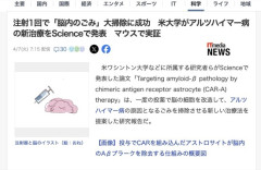 1 : 注射1回で「脳内のごみ」大掃除に成功 米大学がアルツハイマー病の新治療をScienceで発表 マウスで実証(ITmedia NEWS) - Yahoo!ニュース 米ワシントン大学などに所属する研究者らがScienceで発表した論文「Targeting amyloid-β pathology by chimeric antigen receptor astrocyte (CAR-A) therapy」は、一度の投薬で脳の細胞を改造して、アルツハイマー病の原因となるごみを掃除させる新しい治療法を提案した研究報告だ。 アルツハイマー病は、アミロイドβ(Aβ)と呼ばれる異常なタンパク質が脳内に蓄積し、神経細胞がダメージを受けることで進行する認知症の主な原因だ。現在、このAβを取り除くための抗体医薬が承認されているが、高用量で何度も投与しなければならない点や、副作用のリスクなど、解決すべき課題が多く残されている。全文はソースで…