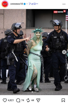 1:それでも動く名無し: 2026/04/08(水) 07:57:31.21 ID:GIzTUjA9M.net 写真では、自由の女神に扮したデモ参加者が、警察に拘束されている。両手を後ろで縛られており、自由の女神を象徴する松明(たいまつ)や銘板は没収されたとみられている。 3:それでも動く名無し: 2026/04/08(水) 07:58:19.34 ID:yyzgnX7q0.net タトゥーすげえな 4:それでも動く名無し: 2026/04/08(水) 07:58:27.67 ID:qnxDrSiD0.net ちょっと太いけどいける 5:それでも動く名無し: 2026/04/08(水) 07:58:34.61 ID:CCgYdW8e0.net この格好のまま留置所とか入るんか? 6:それでも動く名無し: 2026/04/08(水) 07:59:05.13 ID:5HCJKl3mM.net イイね🗽 7:それでも動く名無し: 2026/04/08(水) 07:59:54.70 ID:JnGuyZTx0.net 若干ウケたな…