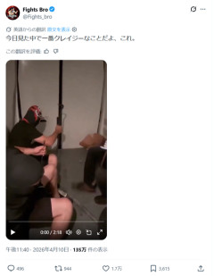 1: 2026/04/11(土) 22:00:37.65 This has to be the craziest thing I’ve seen today pic.twitter.com/A4w96dUpSa— Fights Bro (@Fights_bro) April 10, 2026 ※関連記事 【愕然】3年付き合ってる彼女にプロポーズされた結果・・・・・・…